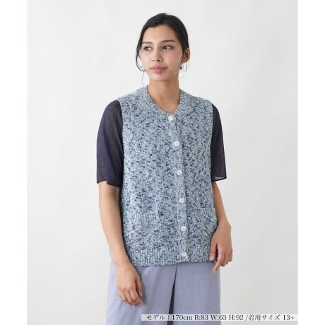 装いに奥行きを与える、クルーネックのニットベスト。無地ライクながらも表情のある編み地が、シンプルさの中に上質感を漂わせます。すっきりとしたクルーネックは、シャツの襟を出したり、カットソーを覗かせたりと、インナーとの組み合わせを楽しめるデザイン。いつものコーディネートに一枚重ねるだけで、ぐっとお洒落な印象に変わります。季節の変わり目の気温調整にはもちろん、夏のシンプルな装いのアクセントとしても活躍。ワンピースの上に重ねてシルエットに変化をつけたり、Tシャツとパンツスタイルを格上げしたりと、様々な着こなしをお楽しみください。