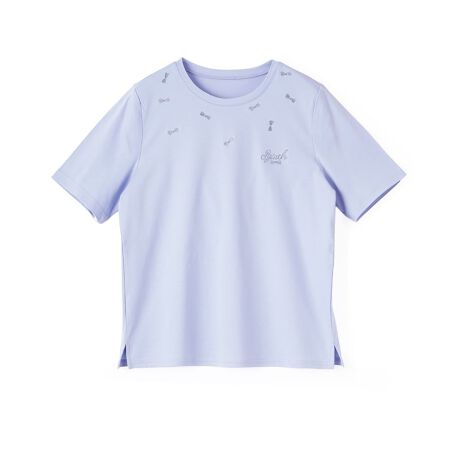 コットンをベースにした接触冷感機能素材を使用し、暑い季節でもひんやりと快適な着心地をキープしたクルーネックカットソー。前身頃に散りばめられた小さなリボンの刺繍が、シンプルなデザインに可憐で上品なアクセントをプラス。ゆとりのあるリラックスシルエットと優れた伸縮性により、動きやすくデイリーユースに最適です。サイドのスリットが軽やかなニュアンスを生み、一枚での着用はもちろん、インナーとしてもこれからの季節の着こなしを華やかに彩る汎用性の高いアイテムです。