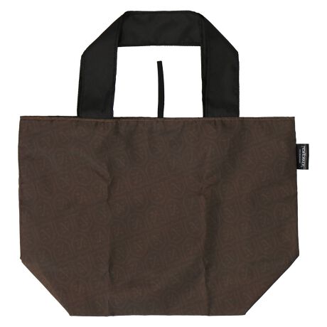 メンズ向けのファスナー付きエコバッグ。ニューヨーカーのエンブレムをモチーフにした幾何柄デザインです。ゴムが付いているので折りたたんでコンパクトに収納できます。