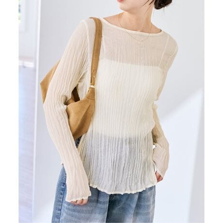 透け感のある軽やかな素材に、ランダムプリーツを施した表情豊かなブラウス。