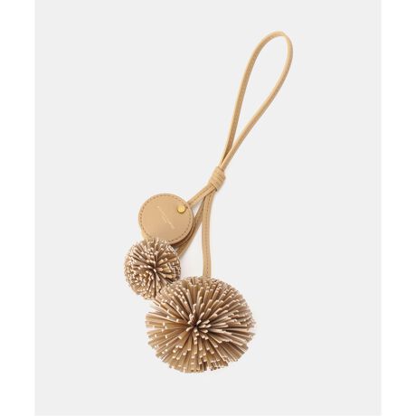 ブランドロゴが刻印されたサークルパーツと、大小2つのボリュームあるフリンジが目を引くバッグチャーム。