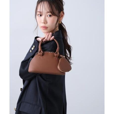 ハート型ポーチチャーム付きが別注ポイントのハーフムーンボストンバッグ。シリコンPU(シリコン×ポリウレタン×ポリエステル)の3層構造を使用。日常生活での快適性と安心感を両立させています。(1)雨の日も安心・水をはじき、不快感を軽減(2)汚れにくい・食べこぼしや泥ハネも拭き取りやすい(3)蒸れにくい・通気性を保ち、長時間でも快適(4)耐水性・安心して日常使いができる※完全防水ではありません。長時間の雨や水中での使用はお避けください。トレンド感のある小さめショルダー付きで、ON・OFF問わず使え、きちんとコーデはもちろん、スウェットやデニムとのカジュアルスタイルにもおすすめ。軽量で型崩れしにくく、きちんと見えするフォルムです。ダブルジップやショルダー付きで使いやすいデザインです。※モデルの着用画像の場合、光の当たり具合により、実際の色味と異なって見えることがございます。色味は、商品単体の画像をご参照ください。