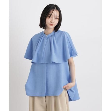 目を惹くケープカラーが首元を華やかに見せてくれるデザインブラウス。衿を取り外してノースリーブブラウスとしても着回せて、雰囲気のチェンジを楽しめるアイテムです。