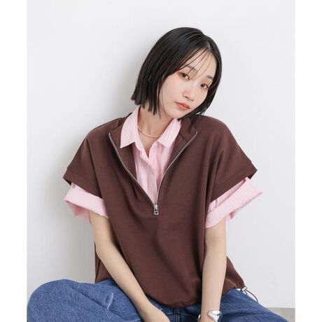 配色カラーが大人可愛い、ストライプ柄の半袖シャツ。そこまで短くないクロップド丈なので色んなボトムとも合わせやすく、スタイリングのポイントになってくれるアイテムです。