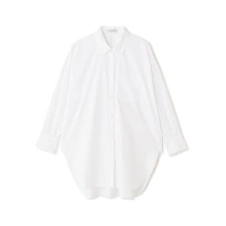 ミニマルにそぎ落とされたシャツカラーのブラウスでシルエットや丈感が絶妙に調整されています。