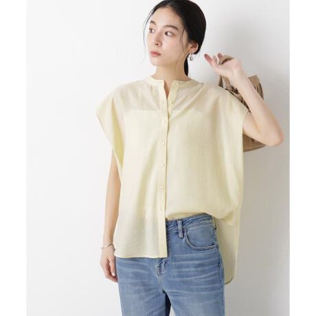 ゆったりとしたシルエットが抜け感を演出する、バンドカラーブラウス。落ち感がありながらもふんわりとした柔らかさを併せ持ち、身体に張り付かず自然なボリュームときれいなシルエットを演出。ONOFFで重宝する一着です。