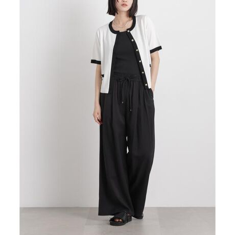 リラックスした穿き心地ときれいめな印象を両立したイージーパンツ。ウエストのドロストが程よいカジュアルさを添えつつ、上品な素材感が落ち着いた雰囲気を演出。肌離れの良いさらりとした質感で、夏の通勤スタイルにもぴったりの一着です。