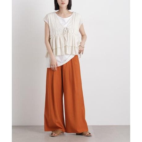 ・トップスをインして、ドロストリボンをポイントに見せる着こなしも◎