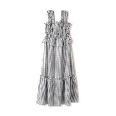シャーリングティアードチェックキャミワンピース