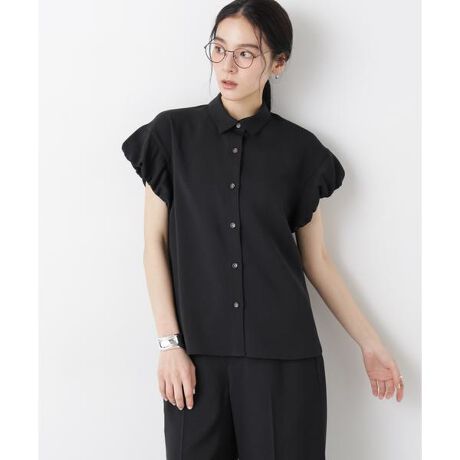 シャツブラウスの型に特徴的なパフスリーブ施したデザインブラウス。ざっくりとした表情が涼しげで、キレイな表面感も備えたバーズアイ素材を使用。同素材展開のパンツとのセットアップスタイルもおすすめです。