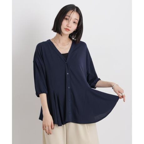 裾にかけて広がるフレアシルエットが、動くたびに華やかさを演出するデザインブラウス。一枚で着映えするのはもちろん、フロントのボタンを開ければ羽織りとしても着回せて、デイリーに活躍する万能なアイテムです。