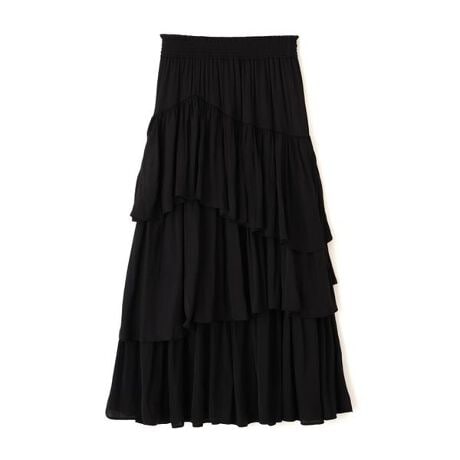 アシンメトリーなデザインが目を引くティアードスカー ト。落ち感のあるやわらかな素材で、動くたびに軽やかに揺れる一枚です。 段差をつけたアシンメトリーなティアードが、甘さを抑えつつ抜け感を演出。 ウエストはステッチ入りのベルトでさり気ないポイントをつけ、ゴム仕様でリラクシーなはき心地です。 腰まわりはスッキリ、裾にかけてふんわり広がるシルエットでスタイルアップが叶います。コンパクトトップスやニット、Tシャツでラフにも着回せます。※モデルの着用画像の場合、光の当たり具合により、実際の色味と異なって見えることがございます。色味は、商品単体の画像をご参照ください。