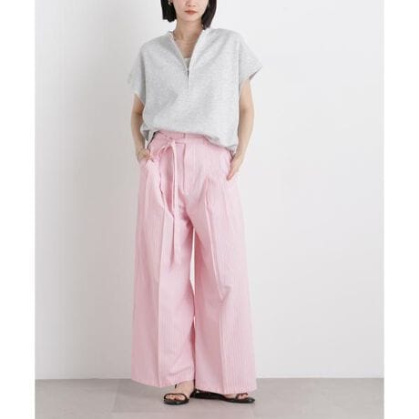 配色カラーが大人可愛い、大人のストライプ柄パンツ。リラックス感のあるシルエットながらもラフになりすぎず、キレイ目に大人っぽく決まる1本です。