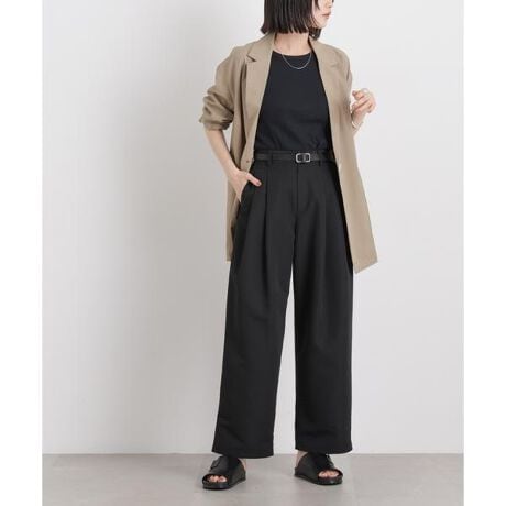 程よい艶感とキレイ目な風合いの素材が、大人のカジュアルコーデにピッタリなワイドパンツ。カジュアルなアイテム感ながらも、素材がキレイ目なのでオフィスカジュアルにも着回せる1本です。