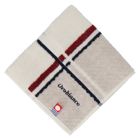 アクセントラインを効かせた、オンオフ問わず使えるデザインの今治タオルハンカチ。プチギフトとしてもおすすめです。