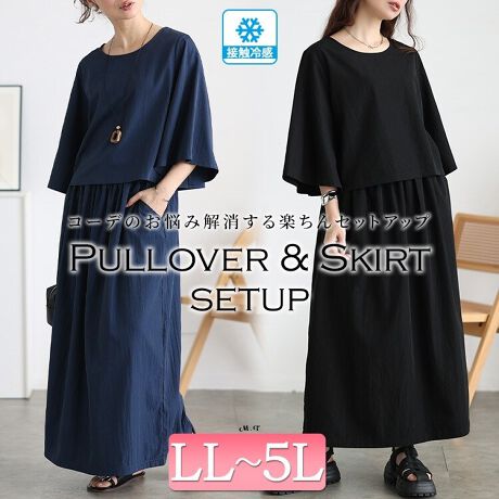 【大きいサイズ】 接触冷感クロップドプルオーバー&フレアスカート2点セット 大きいサイズ レディー