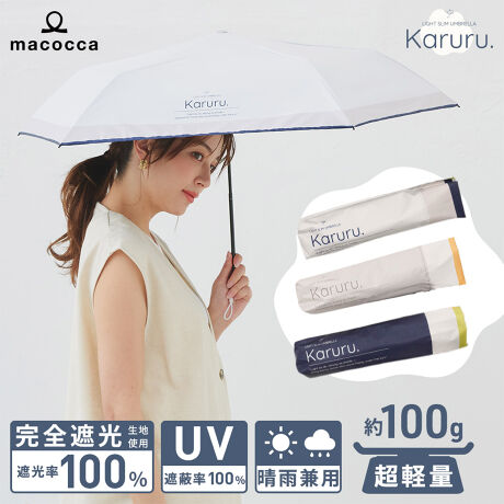 マルイウェブチャネル   /   マコッカ   /   傘・レイングッズ   /   日傘   /   約100g 超軽量 晴雨兼用 完全遮光 折りたたみ傘 Karuru. カルル 切替 遮蔽率100%