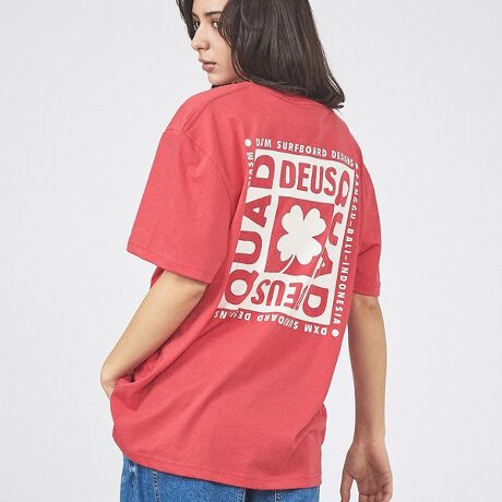 前にワンポイント、後ろに大きくプリントの入ったDeus Ex Machina(ウスエクスマキナ)のTシャツ。