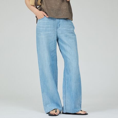 コットンリネンのライトオンスデニムは、通気性と吸湿性に優れ、暑い季節も快適な穿き心地を実現します。