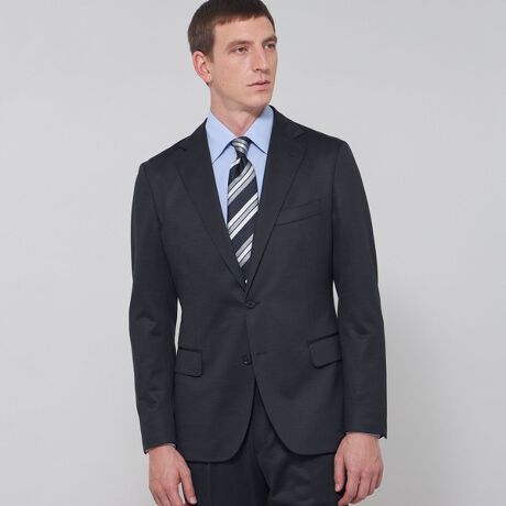 布帛ウールトロピカル調の生地を国内莫大小の特殊なハイゲージジャガードにて超度詰に編み立てる事で布帛さながらのコンパクト感、軽さとジャージー本来のストレッチ性を持ち合わせた定番オリジナルファブリック。ウール原料にはSUPER100sを使用し、後加工の圧縮プレスにより光沢のある生地に仕上げています。また、家庭での手洗い洗濯も可能で、汗や汚れなども気軽に水洗いができる完成されたファブリックです。