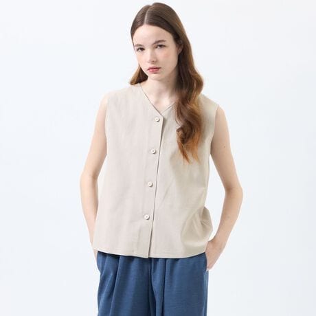 前後着用可能な2WAYデザインで、レイヤード可能なジレブラウスとしても着用いただけます。
