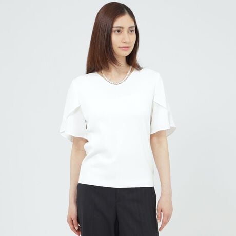 フレアスリーブが華やかな印象を与えます。