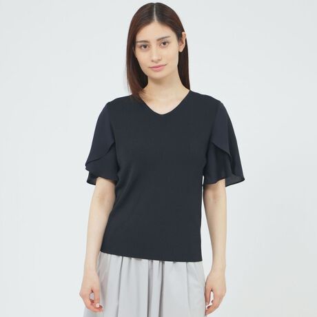 袖に布帛素材をドッキングしたニットプルオーバーです。