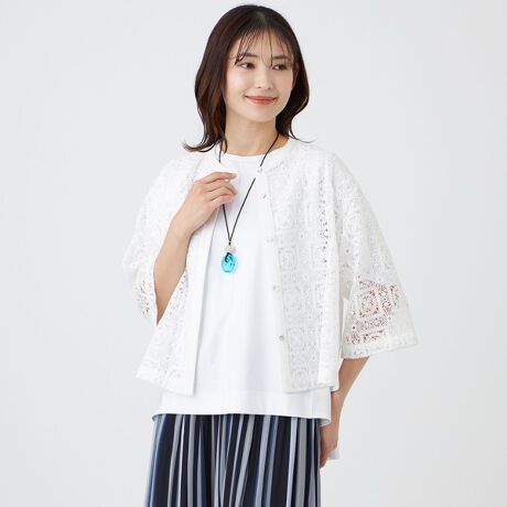 【ウォッシャブル】クロッシュケミカルレースコンビブラウス