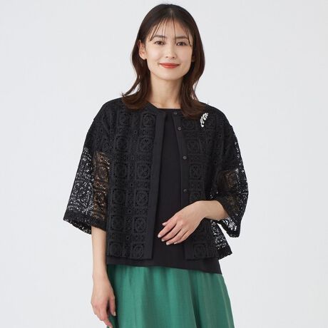 【ウォッシャブル】クロッシュケミカルレースコンビブラウス
