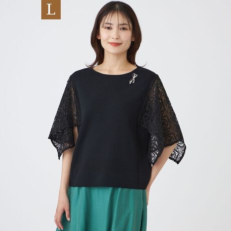 【L】【ウォッシャブル】クロッシュケミカルレースコンビニットプルオーバー
