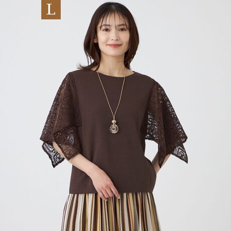 【L】【ウォッシャブル】クロッシュケミカルレースコンビニットプルオーバー