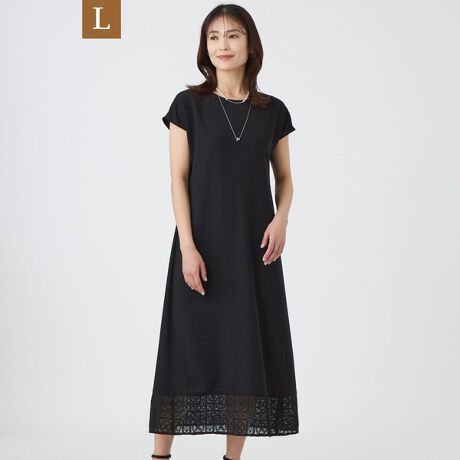 【L】【ウォッシャブル】クロッシュケミカルレースコンビワンピース