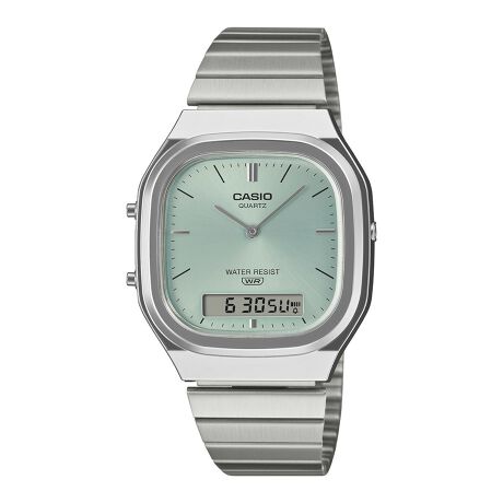 穏やかな色味とレトロモダンのデザインが調和し、日常のコーディネートにやわらかな色どりをもたらすAQ-240です。