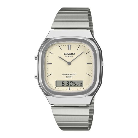 レトロモダンな装いのアナログ・デジタルコンビネーションモデルAQ-240に、ウォームトーンをテーマとしたカラーバリエーションをラインアップ。やわらかな色調で腕元に心地よいニュアンスを添えます。