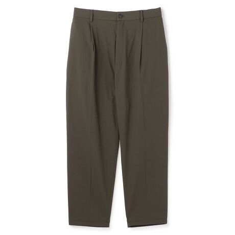 ■デザイン・ややリラックスした、1タック入りのテーパードシルエット。・ウエストにはスピンドルを搭載しています。・ループ付きなのでベルトも使用可能です。・右後ろに片玉縁ポケット付き。