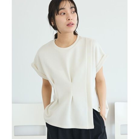軽やかなダンボール素材を使用し、ふんわりとした柔らかな着心地が魅力です。フロントに施されたタックデザインが立体感を生み、シンプルながらも洗練された印象に仕上げてくれます。ほどよく肩を覆うフレンチスリーブは、気になる二の腕をさりげなくカバーしつつ、涼しげで上品な雰囲気を演出します。さらりとした素材感で肌離れも良く、長時間でも快適に過ごせます。パンツやスカートと合わせやすく、カジュアルからきれいめまで幅広いスタイリングに対応できる万能な一枚です。