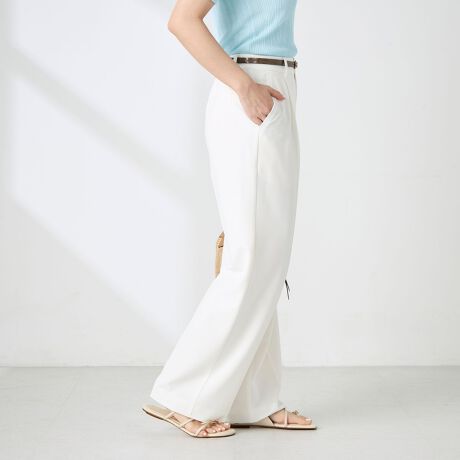 ・センタープレス入りのストンと落ちる素材感で足がまっすぐ見えスタイルアップが叶う1着