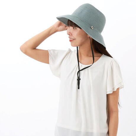 [型番:6505PI0010173]軽やかなブレード素材で仕立てた帽子です。コンパクトに持ち運べて、お買い物やお散歩などの日常使いや旅行などにおススメです。広めなツバは顔まわりの紫外線対策にも最適で、風対策のあご紐付きです。上品さと実用性を兼ね備えた大人の万能ハットです。