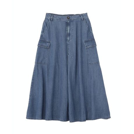 軽やかなライトデニムを使用し、暑い季節でも快適に過ごせる着心地が魅力の一枚です。カーゴディテールを取り入れたデザインが程よいアクセントになり、シンプルな装いに奥行きをプラスしてくれます。広がりすぎないフレアシルエットは体のラインを拾いにくく、自然にスタイルアップを叶えます。ウエストバックゴム仕様でリラックス感のある履き心地ながら、きちんと見えも両立できるバランスの良さがポイントです。カジュアルからきれいめまで幅広いコーディネートに対応し、季節感のある着こなしを楽しめます。毎日の装いに取り入れやすい万能なデニムスカートです。