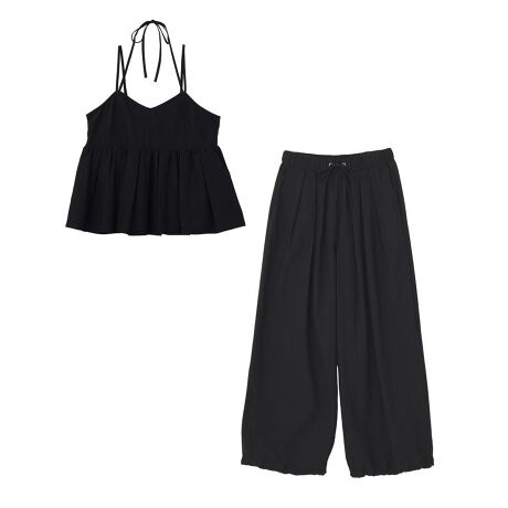 キャミビスチェとワイドパンツがセットになり、コーディネートに悩まず着るだけでバランスの良い着こなしが完成します。やわらかなナチュラル感のある素材が、抜け感と上品さを両立し、日常からお出かけまで幅広く活躍します。ビスチェはシンプルなトップスに重ねるだけでトレンド感をプラスでき、パンツはゆとりのあるシルエットで体のラインを拾いにくく、リラックスした着心地です。それぞれ単品使いもできるため、手持ちのアイテムと組み合わせることでコーディネートの幅が広がり、着回し力の高さも魅力です。