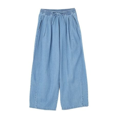 軽やかなライトデニム素材を使用しているため、見た目以上にやわらかく快適なはき心地です。ワイドシルエットが脚のラインを自然にカバーし、体型を選ばず美しいバランスに整えてくれます。ウエストはゴム仕様で締め付け感が少なく、長時間の着用でもストレスを感じにくいのが魅力です。トップスを選ばず合わせやすく、カジュアルにもきれいめにも着こなせる万能な一本です。季節を問わず活躍しやすく、日常使いからお出かけまで幅広いシーンで頼れる存在です。上品さとリラックス感を兼ね備えた、毎日のコーディネートに取り入れやすいアイテムです。