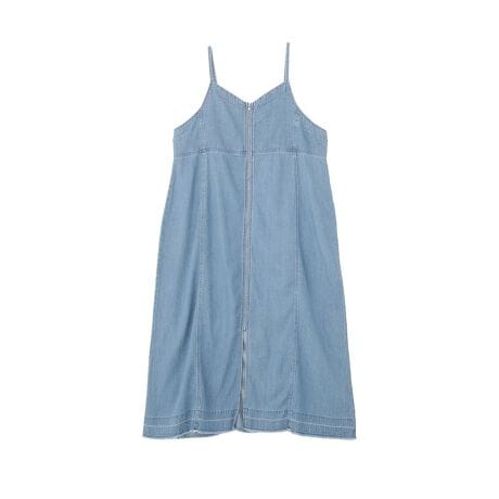 シンプルながらも洗練された印象を演出するキャミワンピースです。ライトデニムならではの軽さとやわらかさで、カジュアルすぎず上品に着こなせるのが魅力です。程よくゆとりのあるシルエットが体のラインを拾いすぎず、リラックス感のある着用感を叶えます。バックにはシャーリングを施し、フィット感と動きやすさを両立しています。肩ストラップは調整可能で、身長やスタイリングに合わせて自由にアレンジできます。インナー次第で印象が変わるため、デイリーコーデの幅が広がる万能アイテムです。
