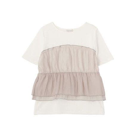 リブトップスにオーガンジー素材のビスチェを重ねたようなドッキングデザインで、トレンド感のある着こなしが手軽に楽しめます。軽やかな透け感と柔らかな風合いが、コーディネートにほどよい華やかさをプラスします。ウエスト部分の切り替えとギャザーがふんわり広がり、自然な体型カバーを叶えつつ女性らしいシルエットを演出します。半袖仕様で着心地も軽く、ロングシーズン活躍するのも嬉しいポイントです。パンツにもスカートにも合わせやすく、シンプルなボトムに合わせるだけで洗練された印象に仕上がります。日常使いからお出かけまで幅広く頼れる万能トップスです。