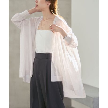 上品な透け感が女性らしい、シアー素材のカーディガン。