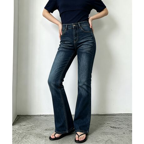ローライズ仕様とマイクロフレアシルエットで脚を長くすっきり見せるデザイン。