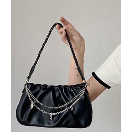 フロントにあしらったチェーンディテールが、コーディネートのさりげないアクセントに。