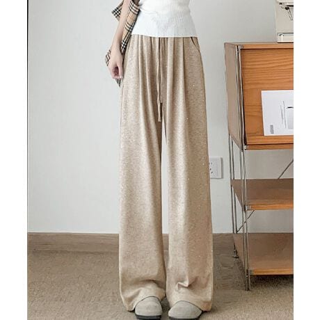 ラメがさりげなく輝く、レディースハイウエストワイドパンツ。