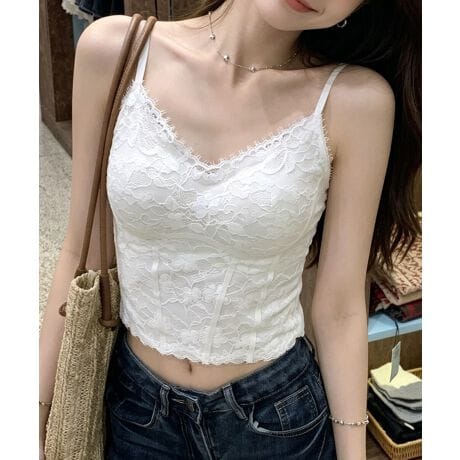 カップ付きでブラ要らずに1枚で着られるレースキャミソール。