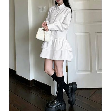 ティアードデザインが可愛いシャツタイプのミニワンピース。