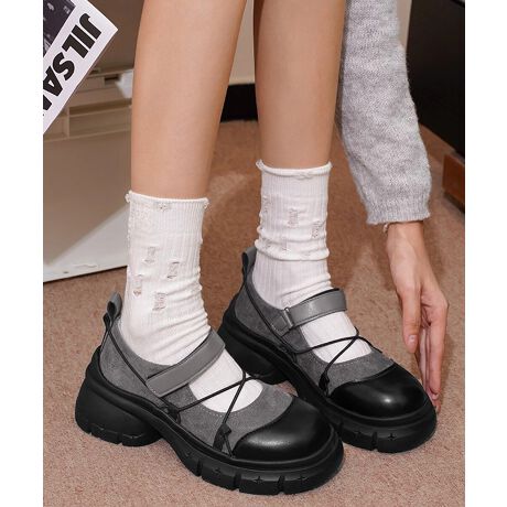 厚底ソールとストラップデザインが特徴のメリージェーンシューズ。